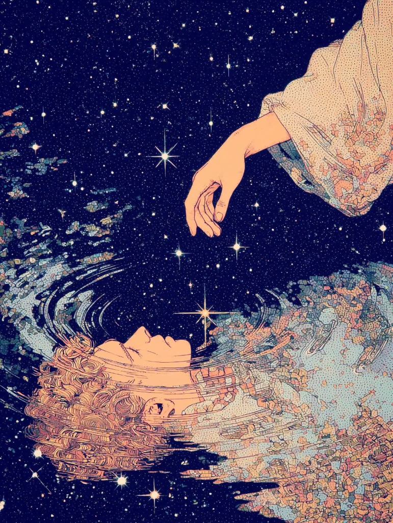 Picturesque starfire burning, gladly beguiling my sight.